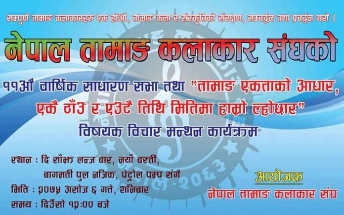 `तामाङ एकताको लागि हाम्रो अभियान´ भन्ने मुल नाराका साथ नेपाल तामाङ कलाकार संघको ११ औ साधरण सभा हुने भयको छ ।