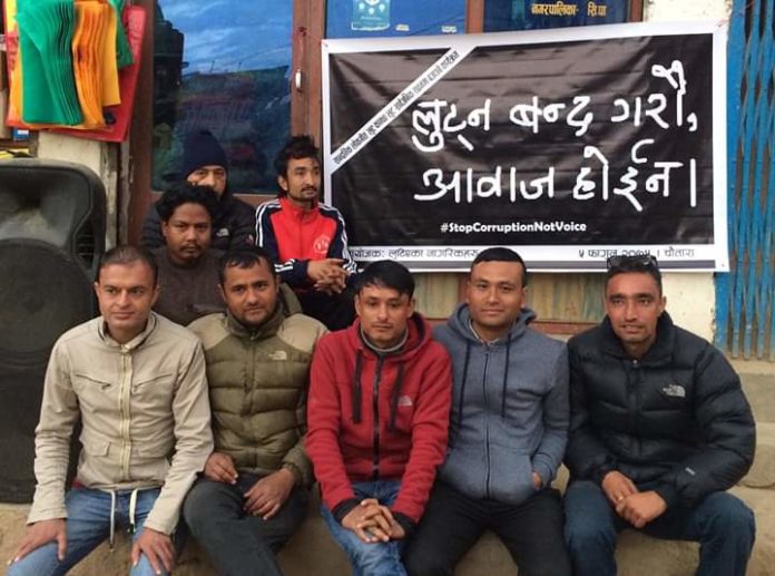 लुट्न बन्द गरौं , आवाज होईन भन्ने नारा सहितको ब्यानर बोकेर युवाहरु सडकमा उत्रिएका छन ।