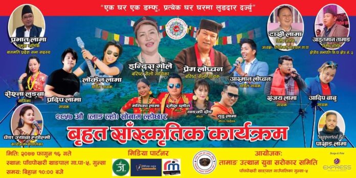 तामाङ उत्थान युवा सरोकार समितिको आयोजना राष्ट्रिय कलाकारहरुको साथमा कार्यक्रम हुन लागेको हो ।